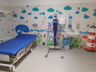 Für die Schuleinrichtung sind folgende Hilfsmittel besonders wichtig: Personenlifter, Toilettenausstattung, Schwerkraftanker in Klassen für Stehübungen, Therapiehocker für Lehrerinnen und Lehrer, usw.